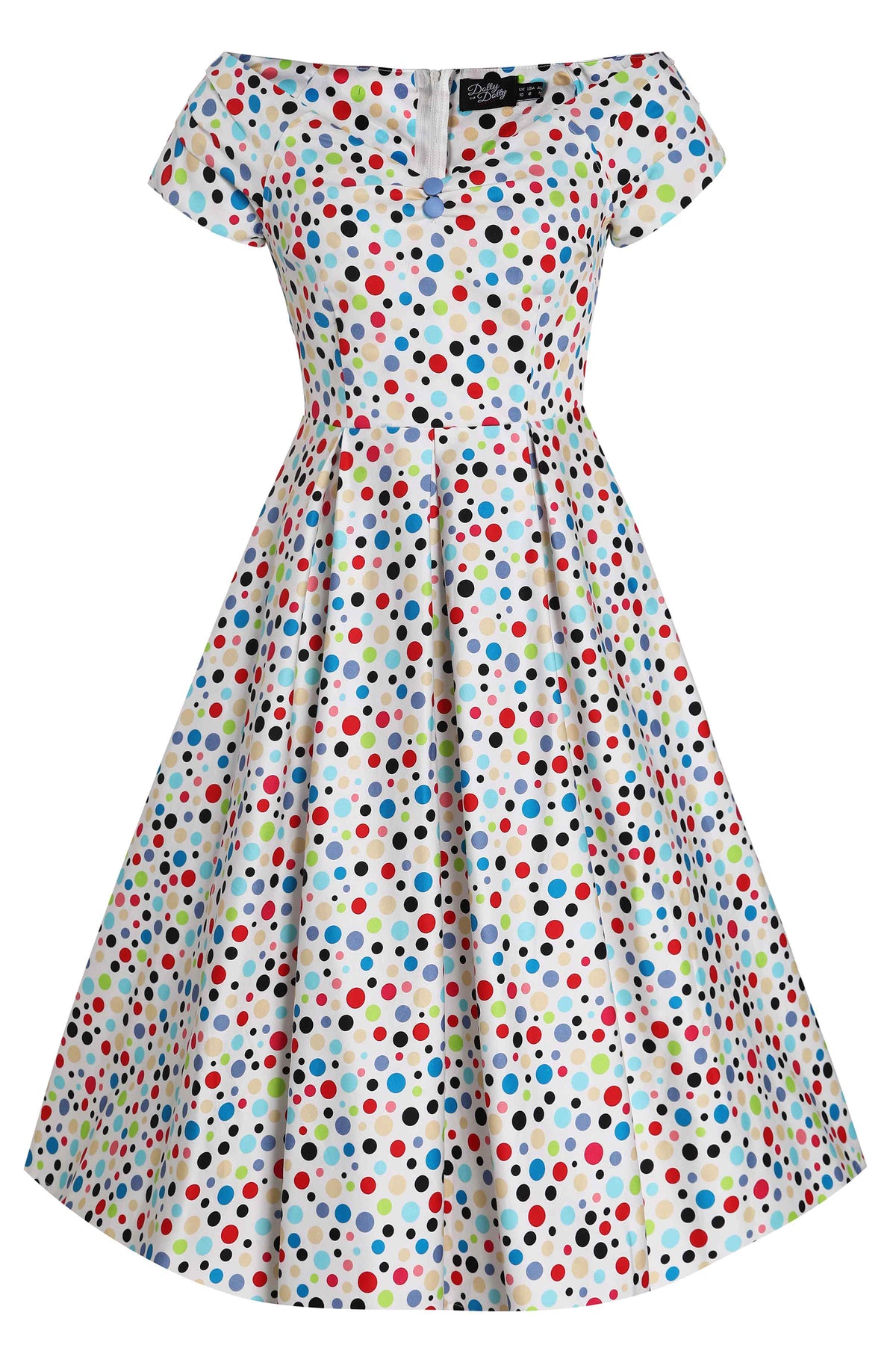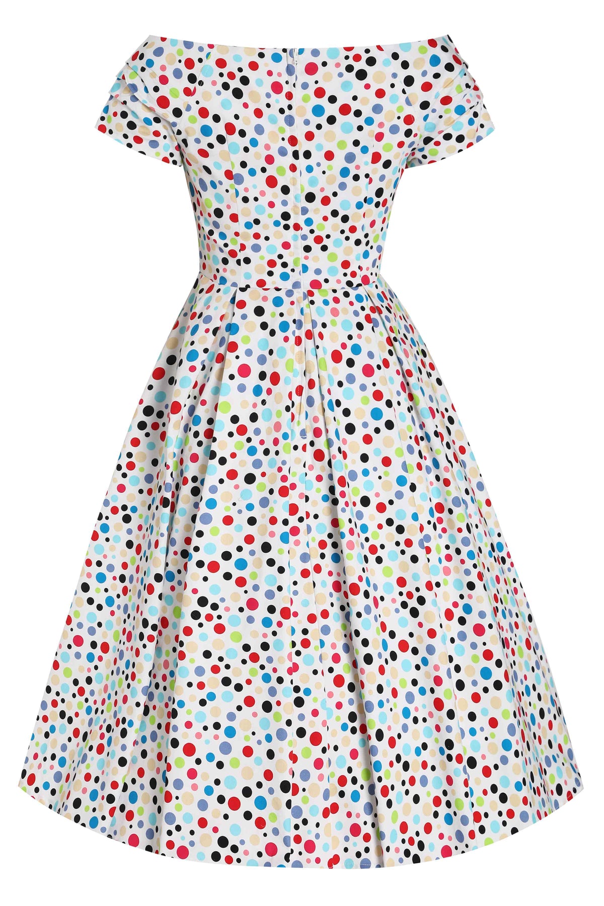 Back view of Colourful Polka Dot Off Shoulder Dress