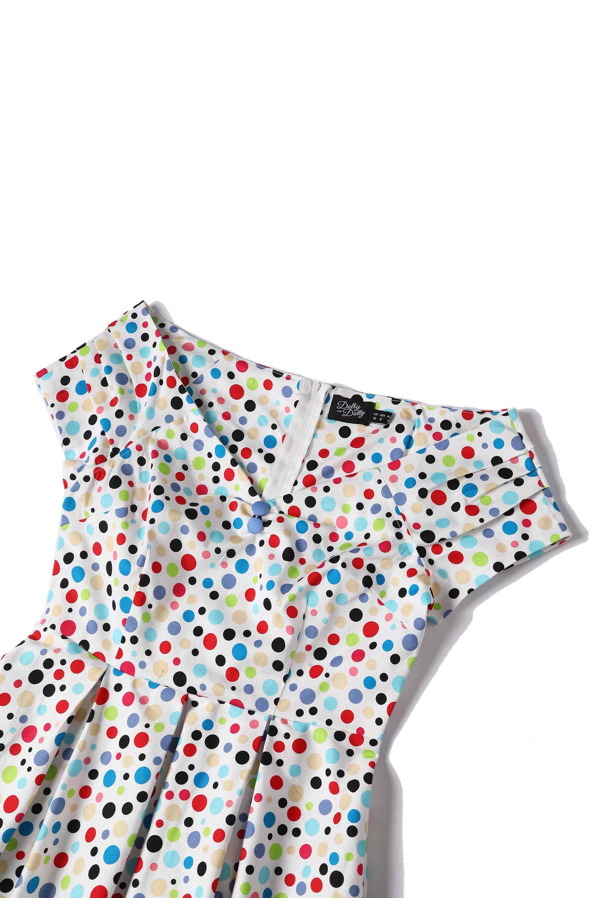 Close up view of Colourful Polka Dot Off Shoulder Dress