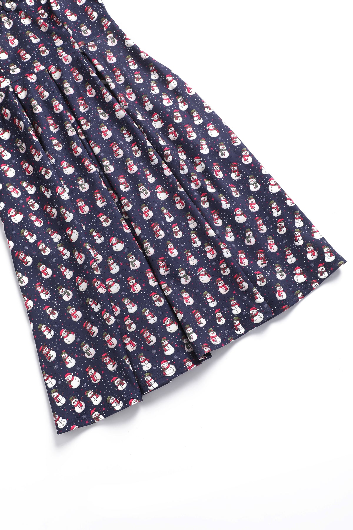 This festive dress showcases an enchanting dark purple hue adorned with playful polka dots and charming snowman prints, making it the ultimate choice for holiday cheer. It features elegant off-the-shoulder sleeves and a sweetheart neckline, while the gathered bust with button detail adds a whimsical touch. The fitted waist flatters your silhouette, and the 50s-inspired pleated, flared skirt brings timeless vintage charm. Hidden pockets provide modern convenience without compromising style.