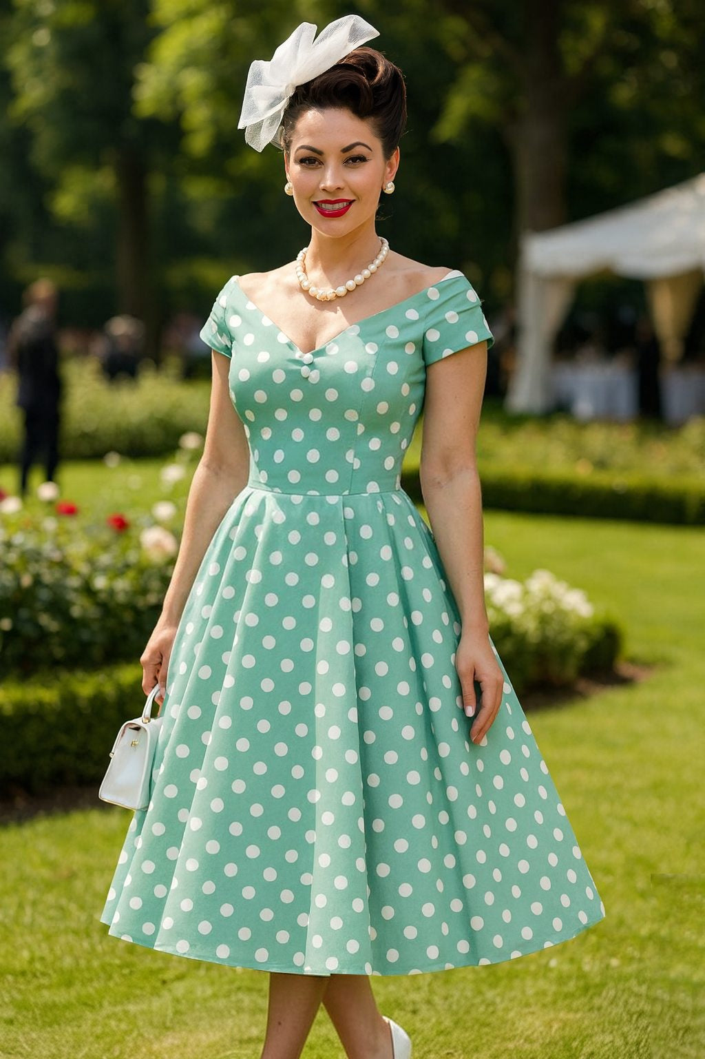 This vintage-inspired off-the-shoulder dress features a flattering off-shoulder neckline and a fitted bodice that cinches in at the waist. The skirt flares out into a classic swing silhouette and falls to a mid-calf length. It’s made from our new premium & soft cotton with stretch for a comfortable fit, and comes with a slim belt, YKK back zip and hidden side pockets - always a customer favourite.