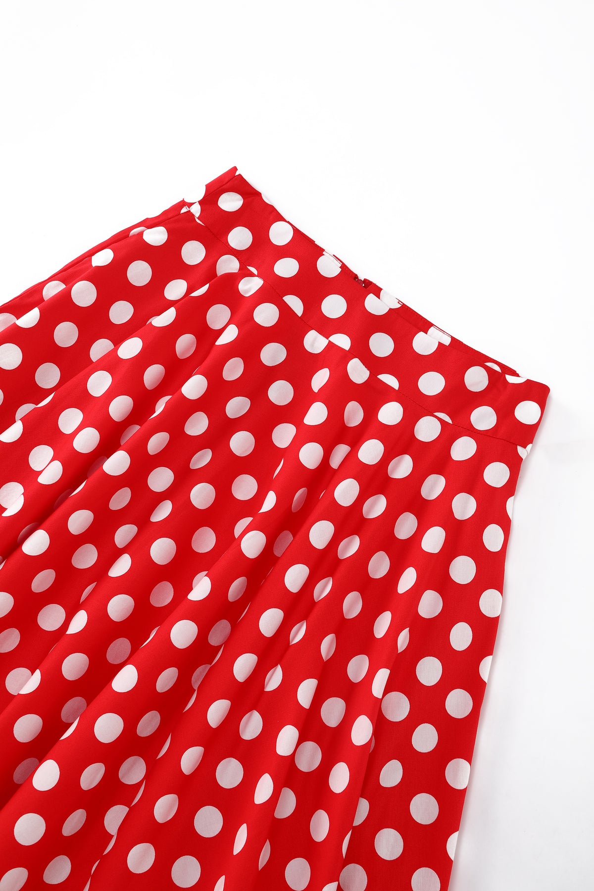 Featuring a vibrant red base adorned with crisp white polka dots, this high-waisted A-line midi skirt is crafted from soft, breathable cotton for all-day comfort. Discreet side pockets add a practical touch without compromising its playful, retro-inspired charm. Perfect for both casual outings and dressier occasions, it’s a bold yet timeless piece that will stand out in any wardrobe.