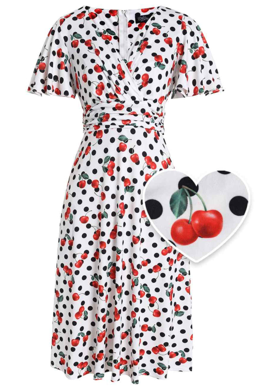Print: Red cherries and polka dots on white