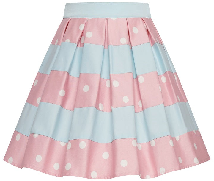 Print: Pale blue with pink/cream polka dot spot striped sections