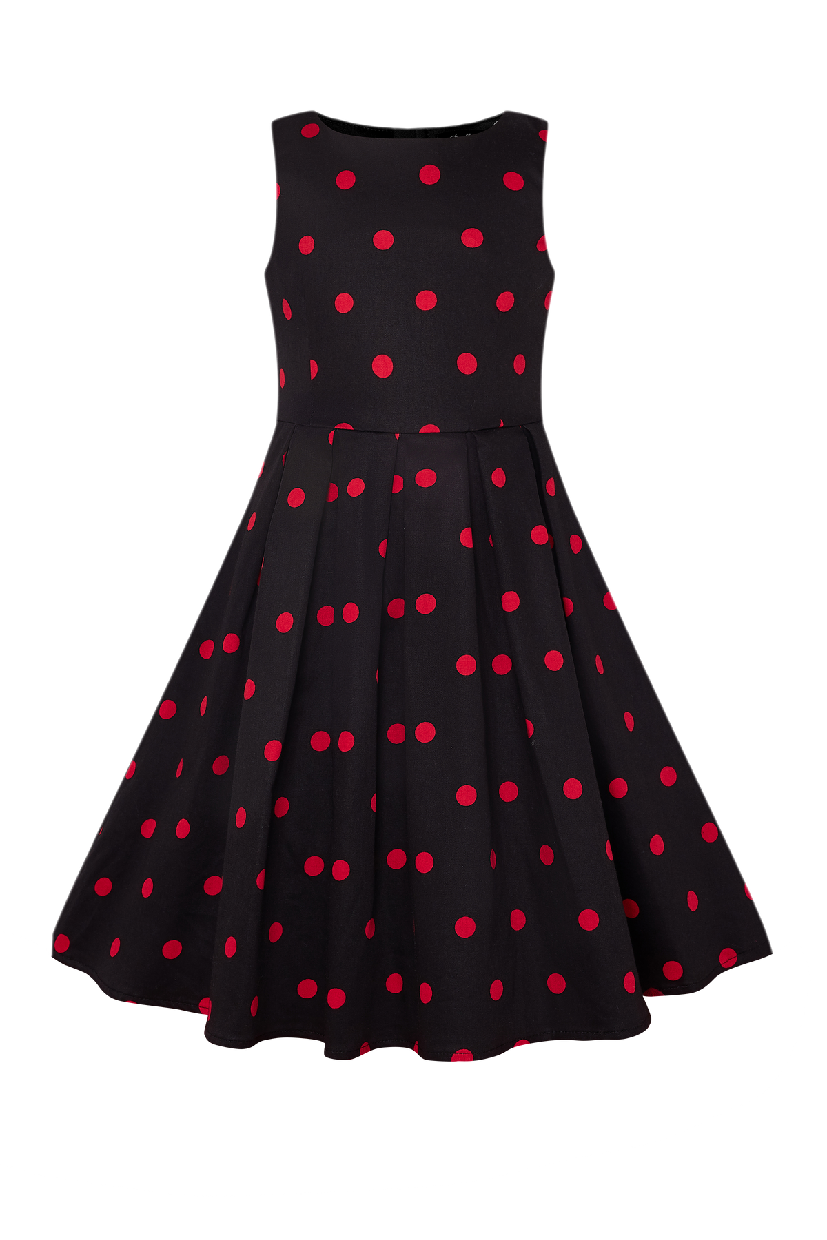 This beautiful vintage-inspired swing dress is now available for girls! Just like its older sister, the dress features a gorgeous 50s-style flared skirt with box pleats, a simple round neckline, and a classic cut. This sensational retro dress is made from soft cotton with stretch and fastens with a zip.