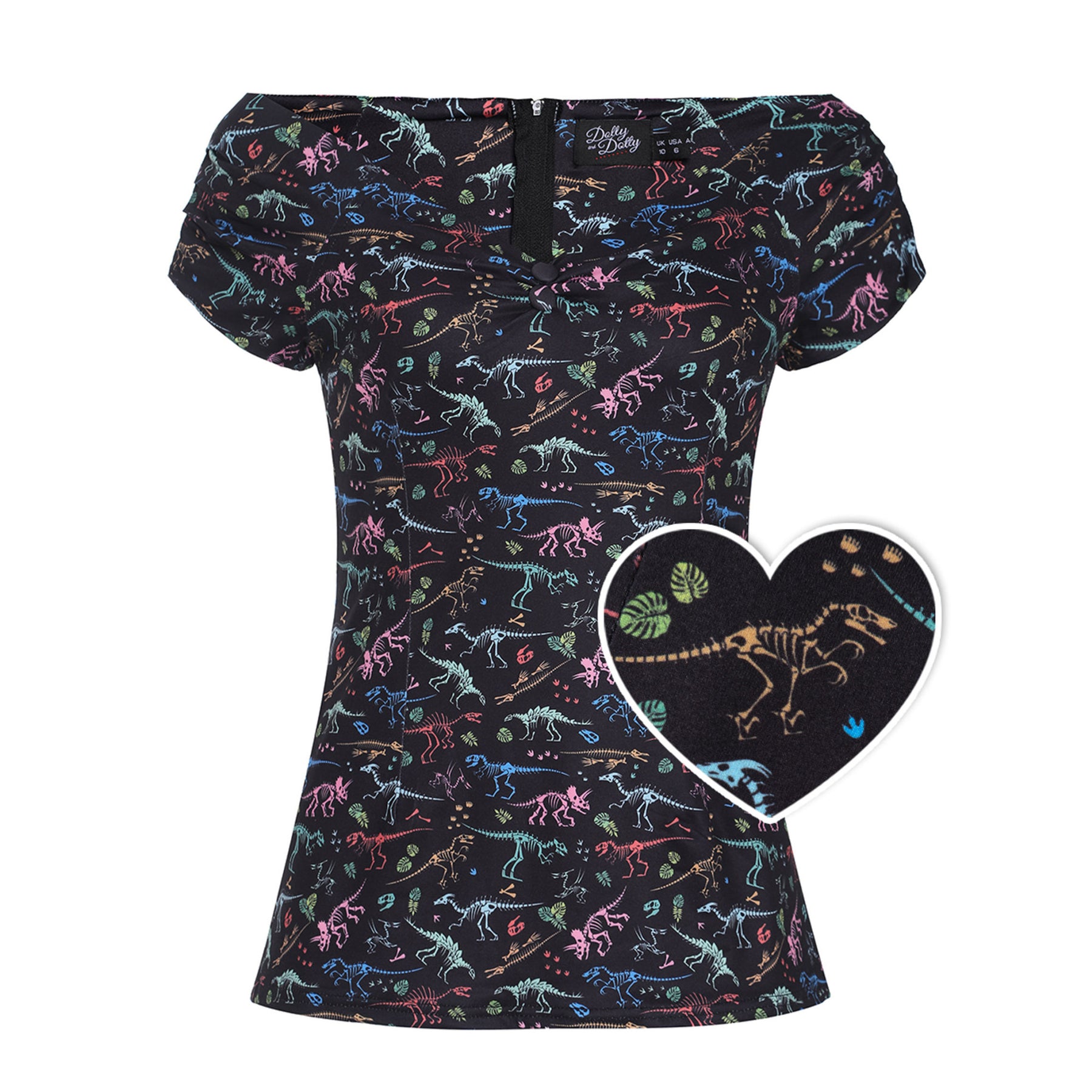 Our classic Lilian top creates a timeless retro style! It features an off-shoulder neckline, a gathered bust with button detail, a flattering fitted shape, and cute short sleeves, and is made from our soft stretchy fabric. Pair it with our Carolyn skirt for a perfect pin-up girl look!