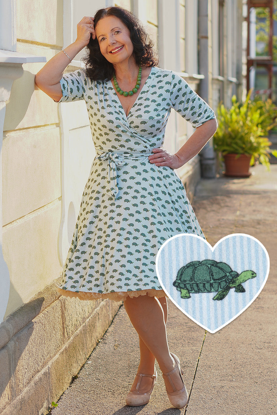 Add a splash of seaside charm to your wardrobe with Dolly & Dotty's Matilda Light Blue Knit Vintage-Inspired Sea Turtle Print Wrap Dress. This delightful dress blends retro elegance with ocean-inspired whimsy, featuring a playful sea turtle print against a soft light blue backdrop. The cozy knit fabric drapes beautifully, offering a flattering wrap silhouette that enhances your figure while ensuring all-day comfort. Whether you're strolling along the shore or enjoying a casual day out, the Matilda Light Blue Knit Vintage-Inspired Sea Turtle Print Wrap Dress brings a breezy, vintage-inspired flair to any occasion.
